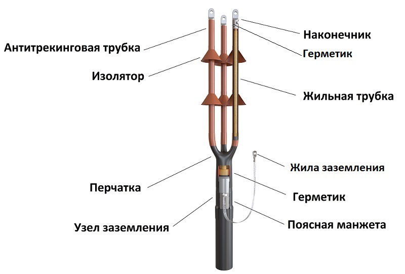 Муфты соответствуют требованиям ГОСТ 13781.0-86. Для выравнивания напряженности электрического поля в корешке разделки кабеля на 6-10 кВ применяется высоковольтная перчатка черного цвета и лента-регулятор.